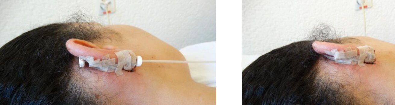 Die Behandlung erfolgte in enger Zusammenarbeit mit der Klinik für Plastische und Handchirurgie. Im konkreten Fall handelte es sich um die Behandlung eines Keloids hinter dem rechten Ohr einer Patientin.