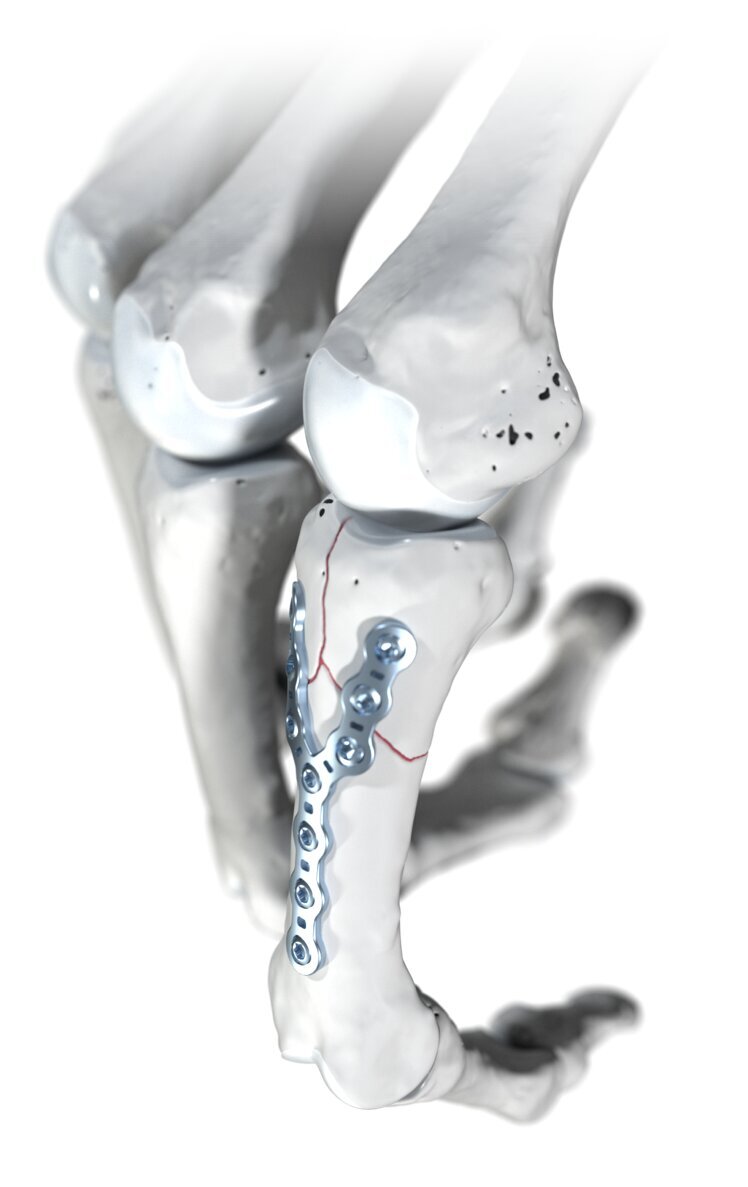 «Die Y-förmige Platte lässt sich individuell zuschneiden und biegen, sodass sie auch seitlich oder an den weiter aussen liegenden Fingergliedern verwendet werden kann», erklärt Andrea Tami, Senior Global Market Product Manager bei Medartis. Ein weiterer Vorteil: Der Ansatz der Strecksehne auf der Rückseite des Mittelglieds kann dank des speziellen Plattendesigns geschont werden, was nach der Operation zu weniger Beschwerden führen sollte.